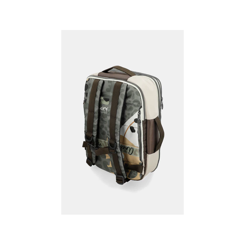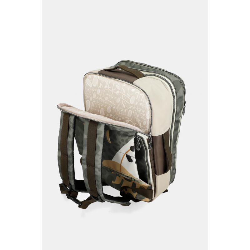 Mochila estampada mediana para mujer de múltiples compartimentos interiores y exteriores.