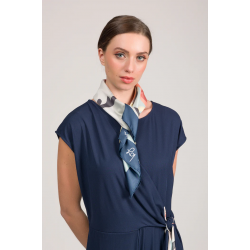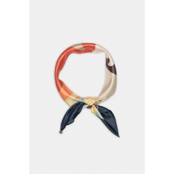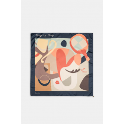 Pañuelo estampado para mujer. Su estampado presenta un diseño gráfico lleno de significado, inspirado en la creatividad, la cultura y la expresión personal. Confeccionado en tejido ligero y suave, es ideal para llevar al cuello, en el cabello o como toque distintivo en tu bolso. Un accesorio que suma estilo y personalidad a cualquier look.
