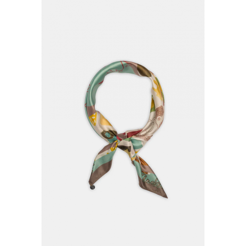 Pañuelo estampado para mujer. Perfecto para llevarlo al cuello, en el cabello o como detalle en tu bolso, destaca por su suavidad, caída ligera y originalidad cromática. Un complemento que transforma lo cotidiano en especial.