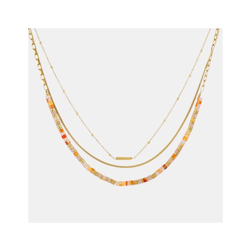 Collar con cadenas doradas finas para mujer.  Está fabricado con acero quirúrgico, lo que lo hace hipoalergénico y resistente al agua, ideal para acompañarte todos los días sin perder su brillo ni color. Además, incluye extensor de cadena, garantiza un ajuste cómodo y versátil, perfecto para llevar solo o en combinación con otras piezas.