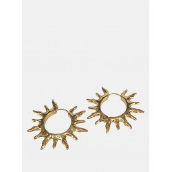 Pendiente tipo aro de diseño de sol de acero inoxidable y una media aproximada de 1,65 cm de alto x 2,42 cm de ancho.