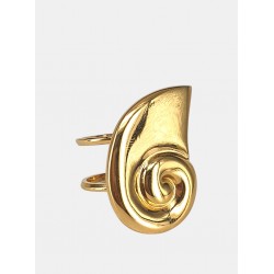 Anillo de diseño de caracola de mar realizado en acero quirúrgico con baño dorado, este maxi anillo es super original y libre de alergias. Destaca con sofisticación y estilo con este accesorio de lujo.Talla única ajustable.