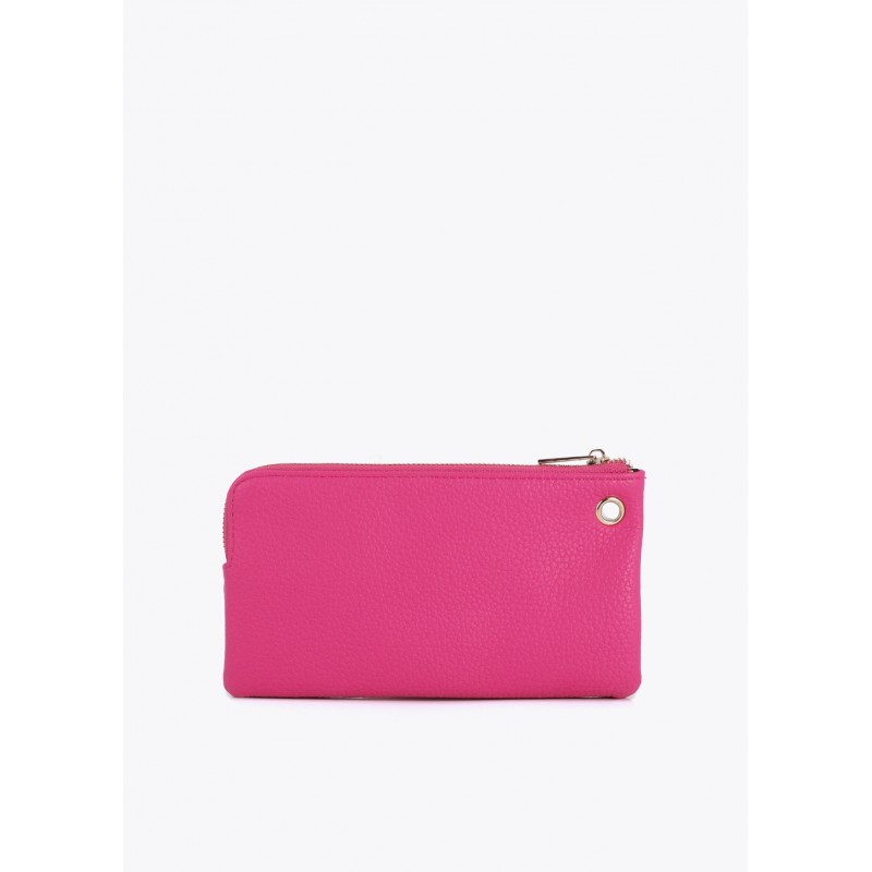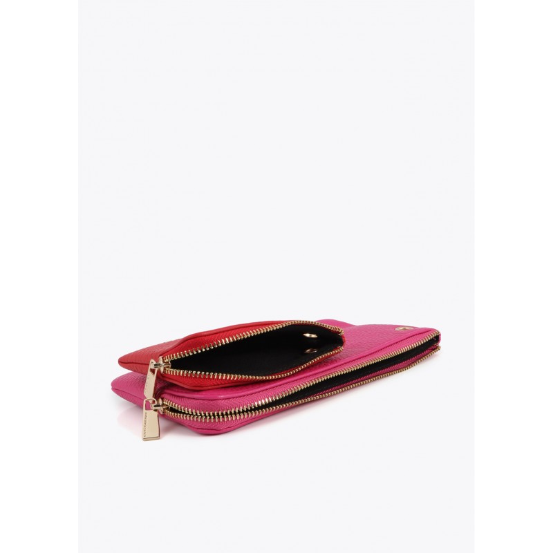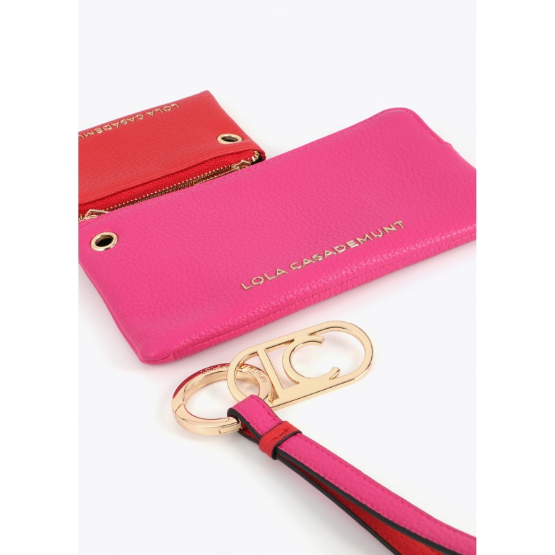 Monedero doble en vibrantes tonos fucsia y rojo, con detalle de colgante LC dorado. Amplio espacio interior y cierre de cremallera. Perfecto para mantener tus esenciales a mano con estilo.