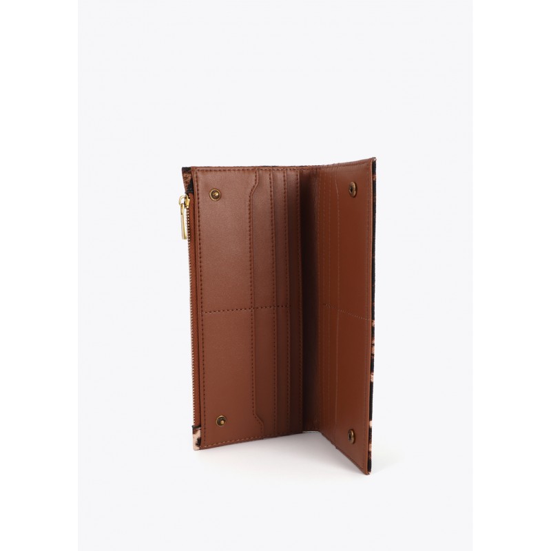 Cartera con elegante estampado animal y cierre de cremallera dorada. Interior espacioso con múltiples compartimentos para tarjetas y billetes. Ideal para llevar en cualquier ocasión, combinando estilo y funcionalidad.