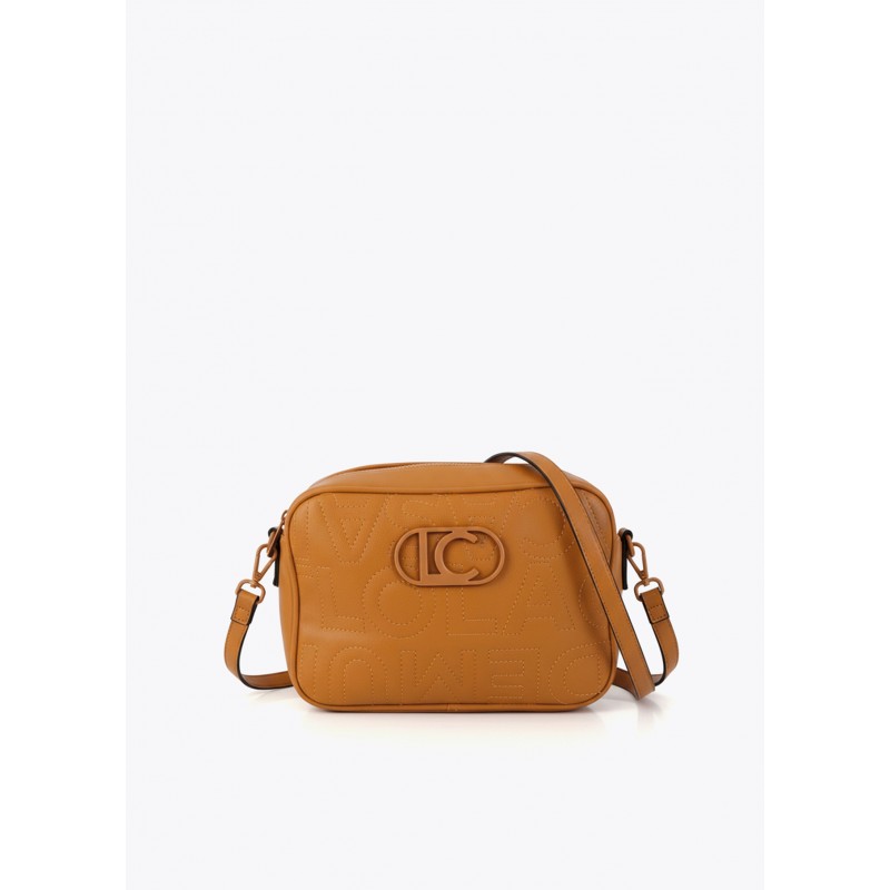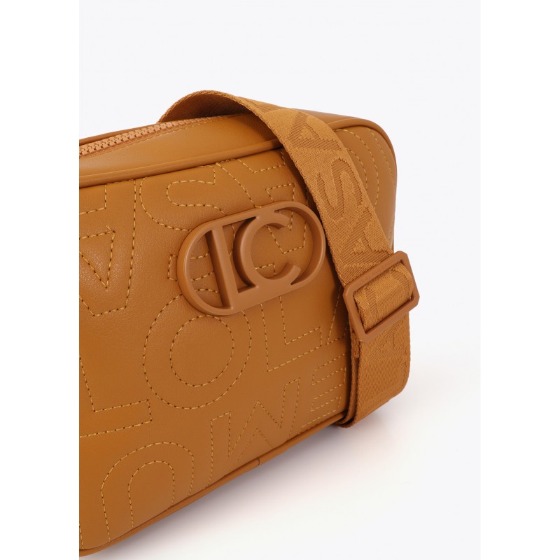 Bolso tipo bandolera para mujer de diseño compacto con pespuntes en relieve de monograma. Correa ajustable y cierre de cremallera. Confeccionada en poliuretano resistente, ideal para un toque chic en tus outfits urbanos.