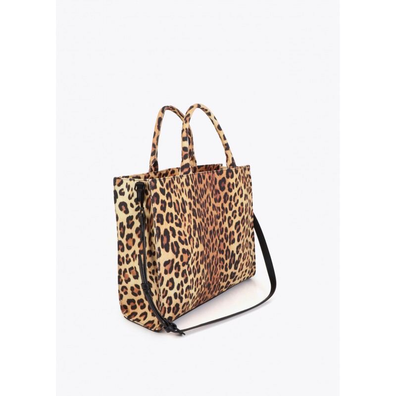Bolso shopper para mujer espacioso con estampado de leopardo en tejido resistente. Ideal para un estilo urbano y atrevido. Incluye asas dobles y detalles del logotipo bordado.