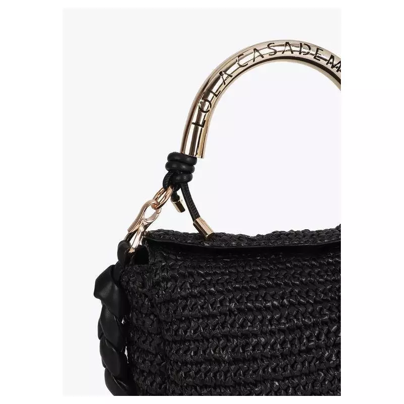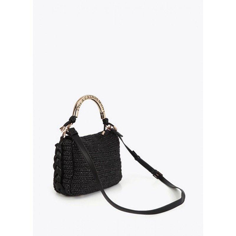 Bolso para mujer combinado en rafia y detalles en piel sintética, cierre principal de imán, detalle de la marca en metal y doble asa corta una de ellas metálica más una extraíble para llevar tipo bandolera.
