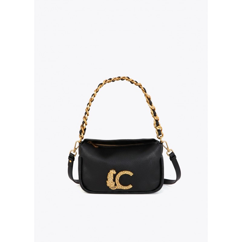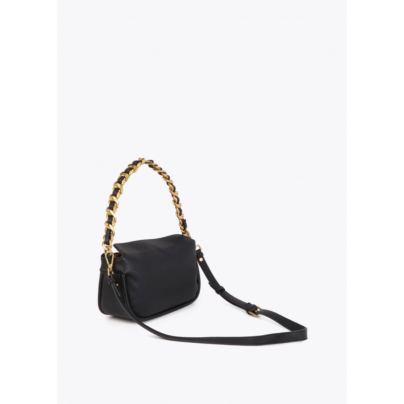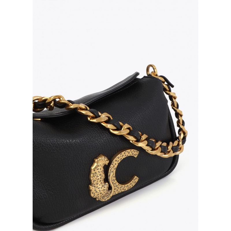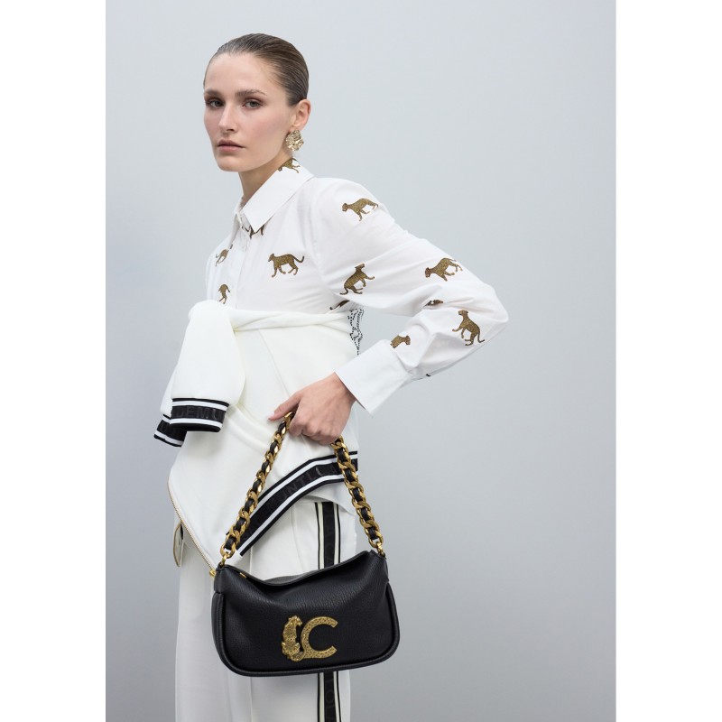 Bolso para mujer de piel en tono neutro con detalle de cadena dorada y logo animal. Interior espacioso con compartimento seguro. Perfecto para un look sofisticado y moderno.