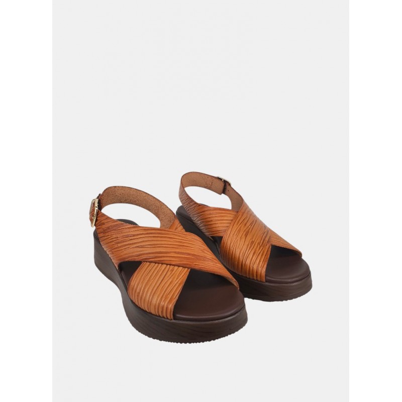 Esta sandalia con una cuña baja aporta estilo sin perder comodidad además sus colores en tono avellana o papaya hacen que resalte cualquiera de tus looks.