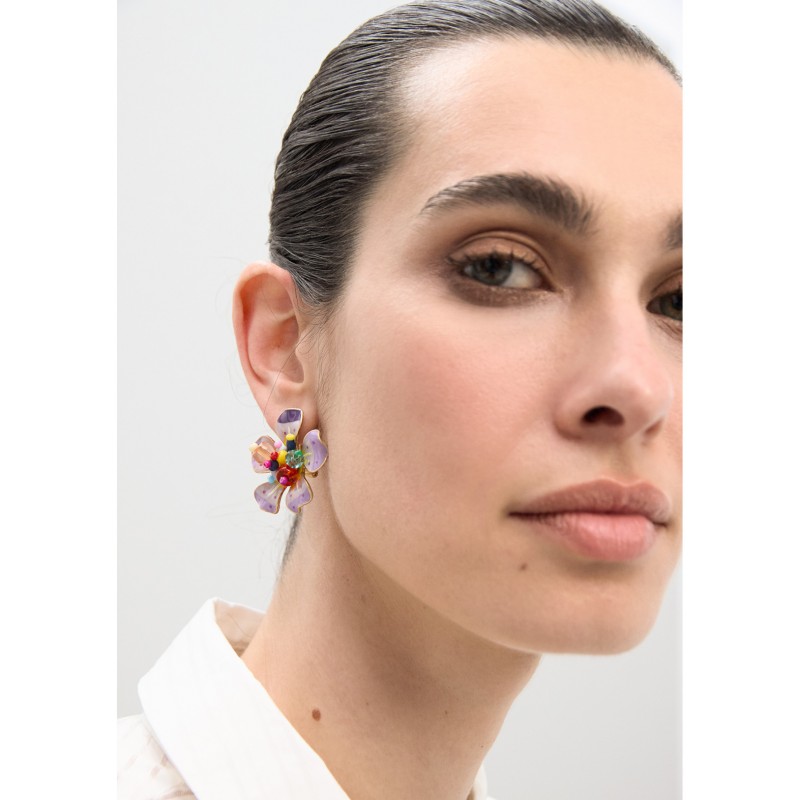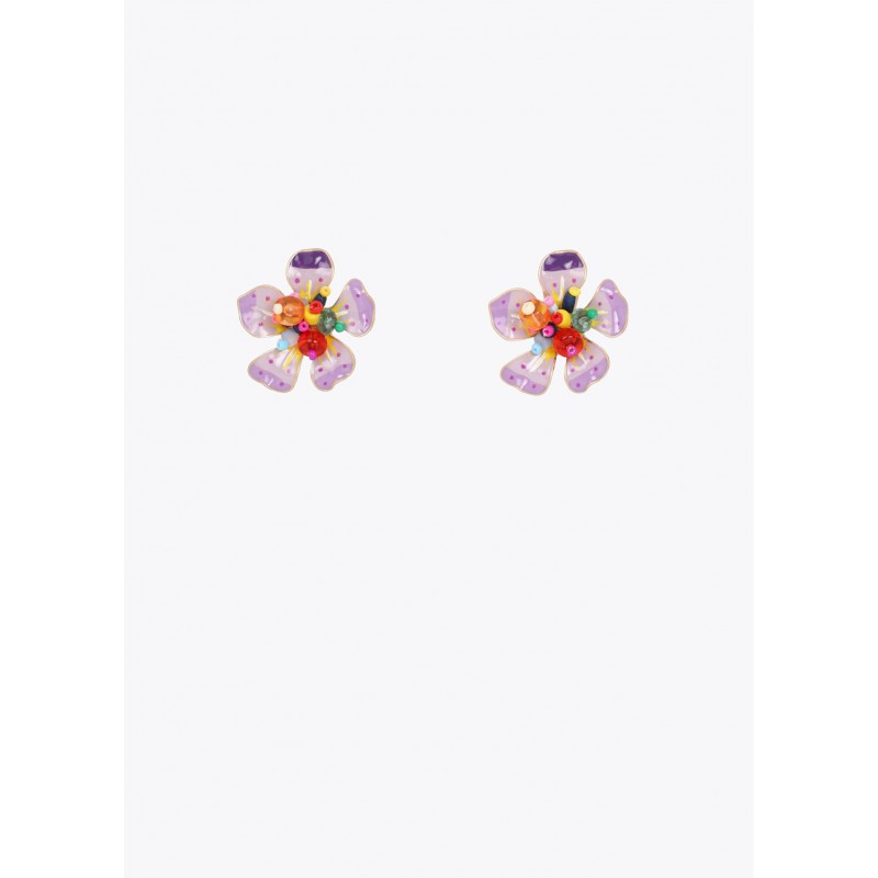 Pendientes llamativos con diseño de flor lacada y abalorios multicolor. Elaborados con materiales de alta calidad para un estilo vibrante. Cierre de presión seguro. Perfectos para dar un toque especial a cualquier atuendo.