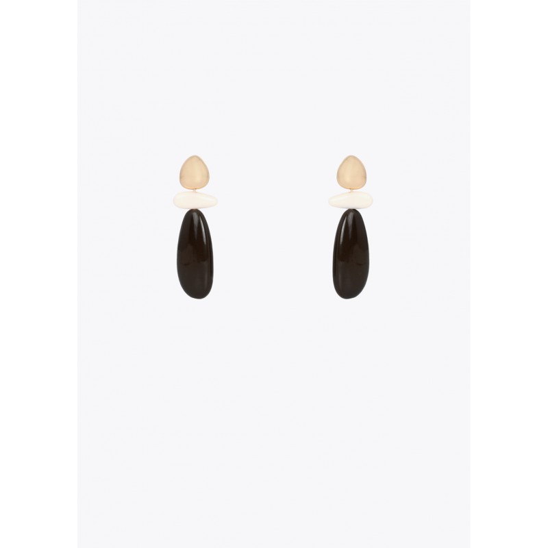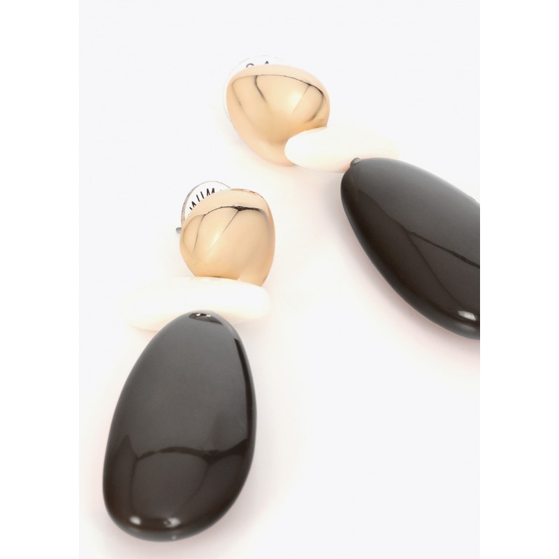 Elegantes pendientes en resina bicolor que combinan tonalidades modernas con un diseño sofisticado. Su forma orgánica y cierre seguro los hacen perfectos para cualquier ocasión. Detalle de acabado brillante que añade un toque de lujo discreto a tu esti