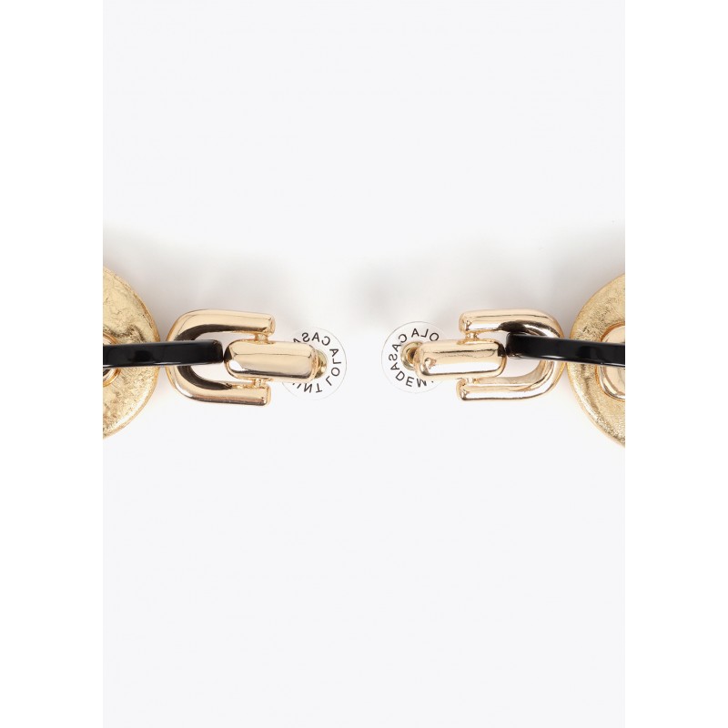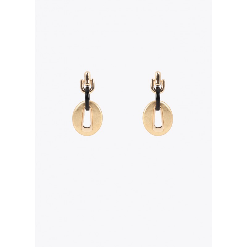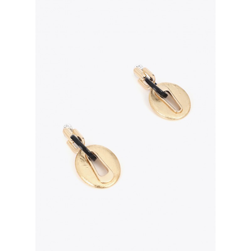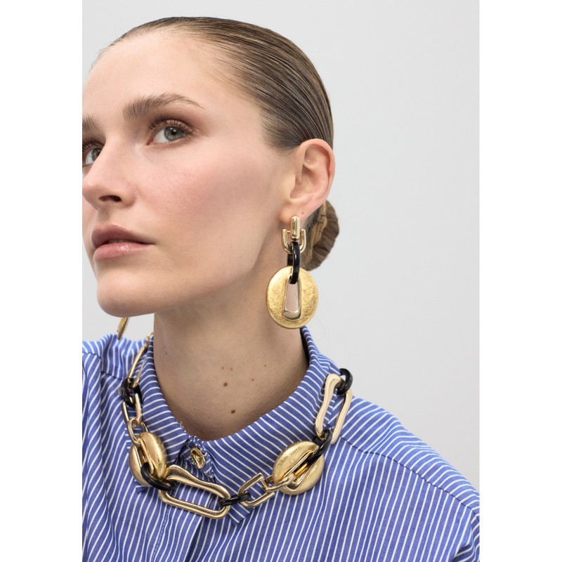 Pendiente en color dorado de eslabones combinados con aro cadena en color negro.