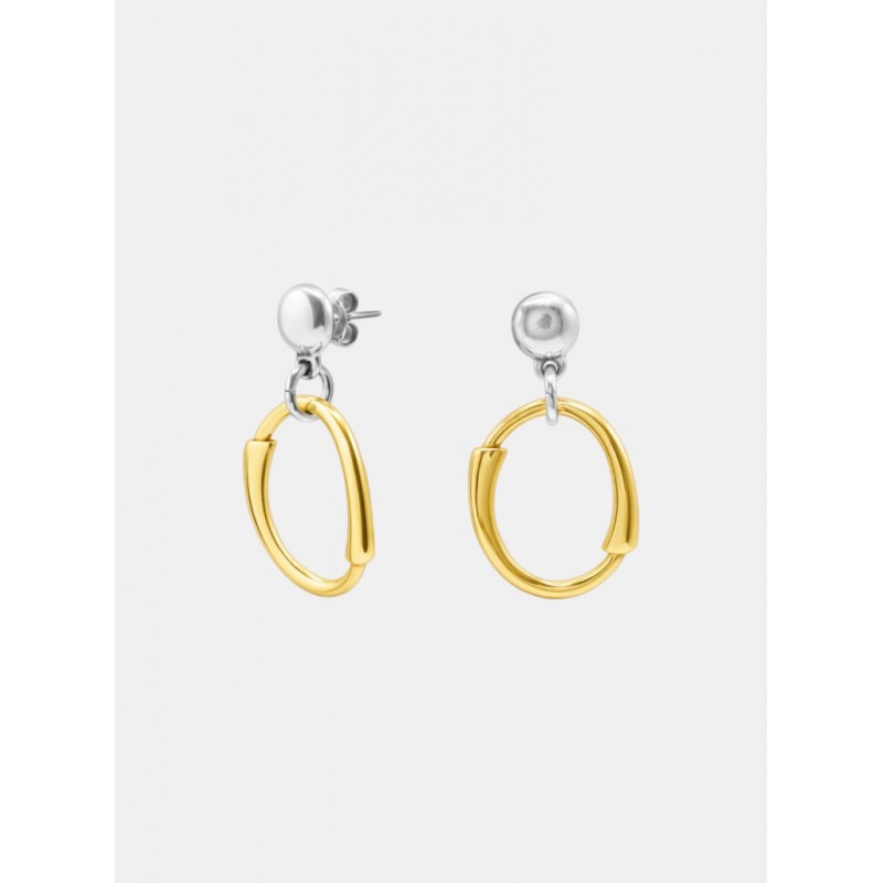 Pendientes para mujer largos de diseño de eslabones de baño de plata y oro con cierre a presión para un ajuste cómodo y seguro. Una joya perfecta para realzar cualquier look y transmitir personalidad y estilo con cada gesto.