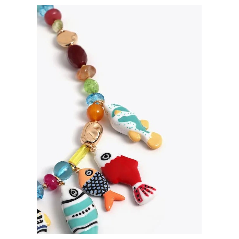 Collar cristales multicolor con charms de peces