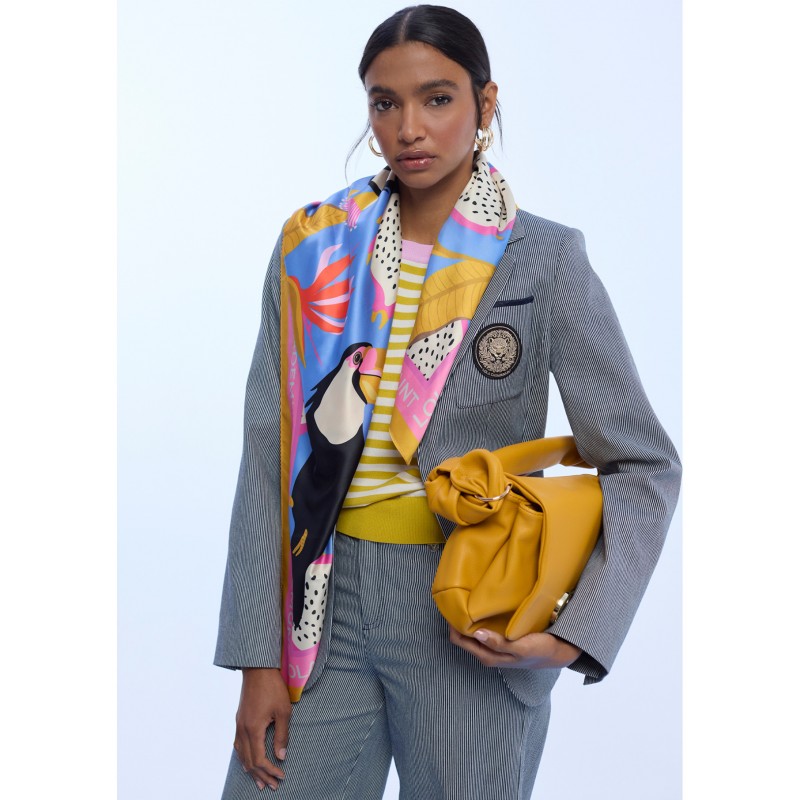 Pañuelo satinado con estampado tropical