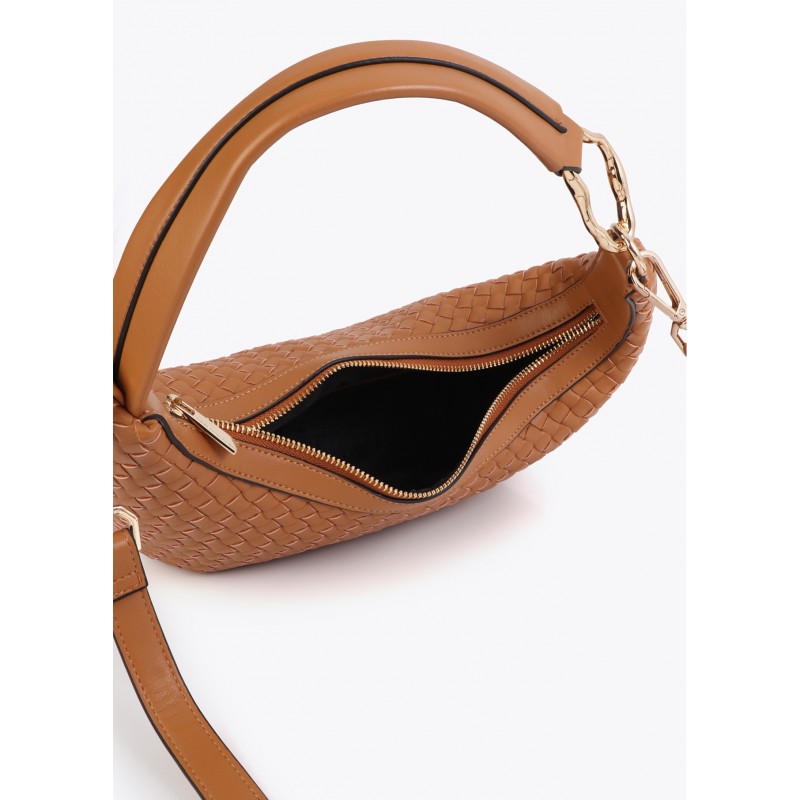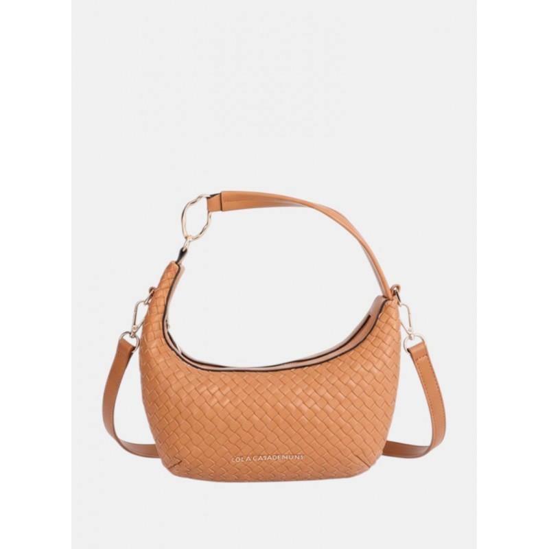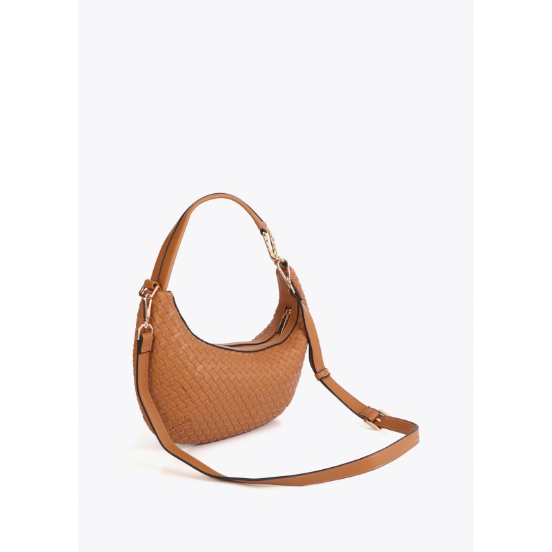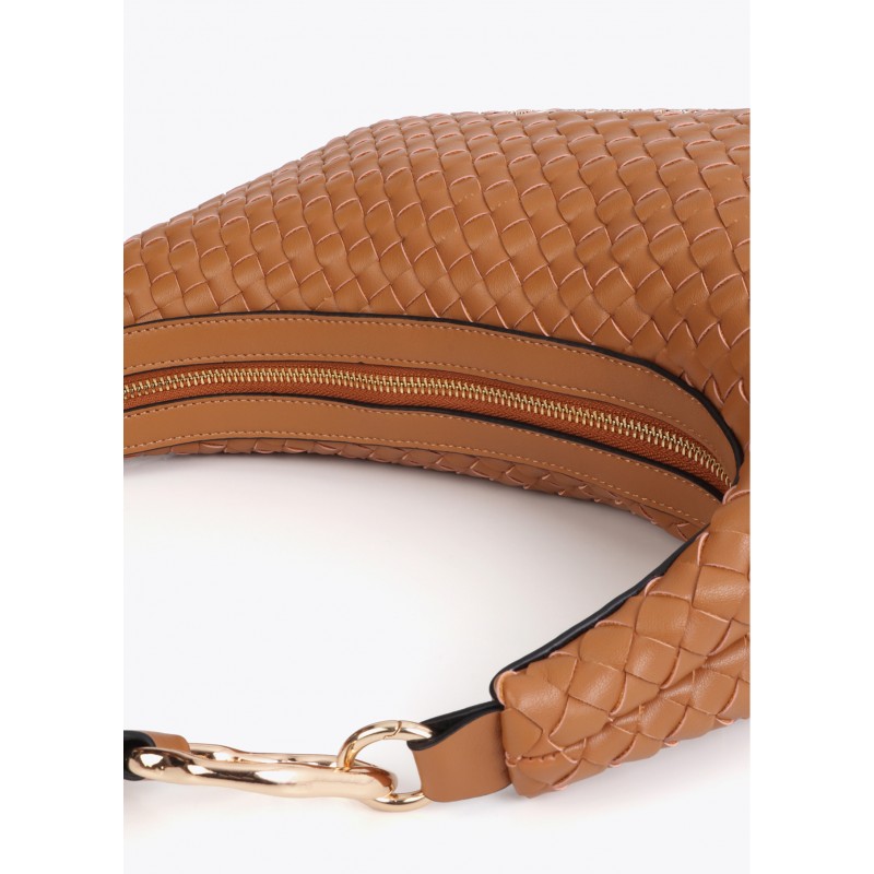 Bolso trenzado media luna , confeccionado en material sintético de alta calidad. Incluye correa ajustable y cierre de cremallera dorada. Ideal para complementar tanto looks casuales como elegantes.