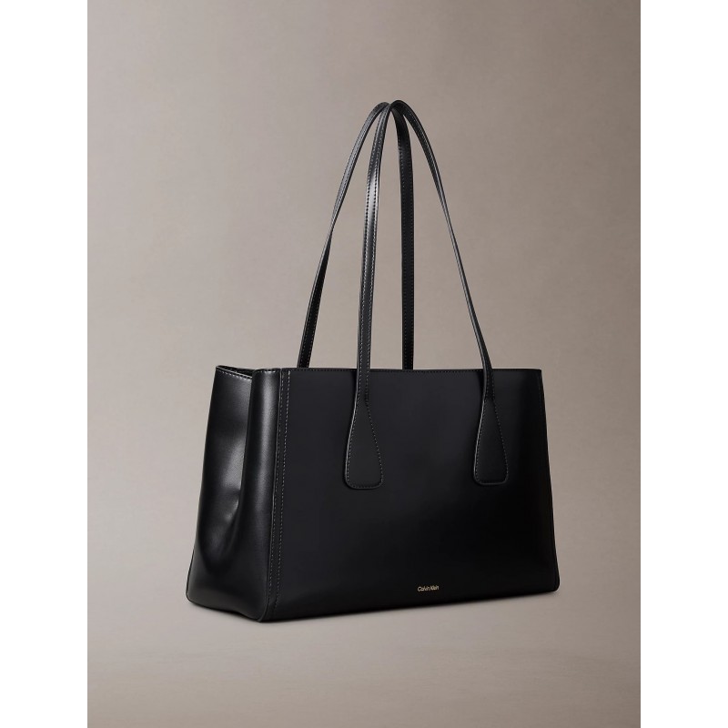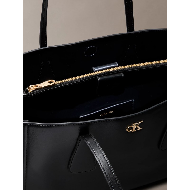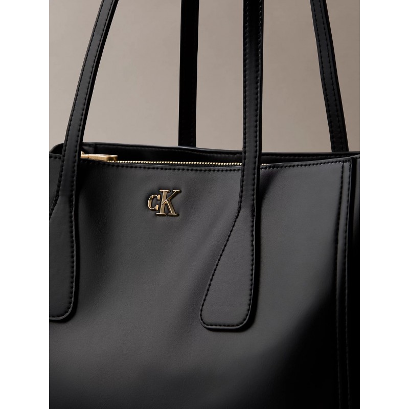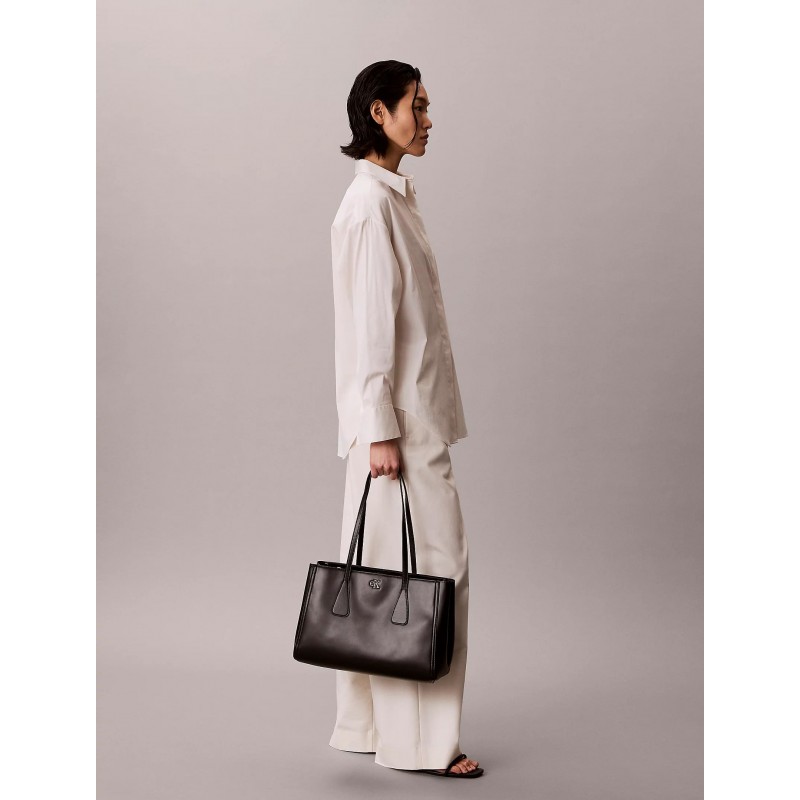Bolso para mujer de cierres de lengüeta magnéticos, compartimentos uno de ellos con cierre de cremallera, herraje con el monograma facetado de Calvin Klein en la parte delantera y doble asa llevar al hombro.