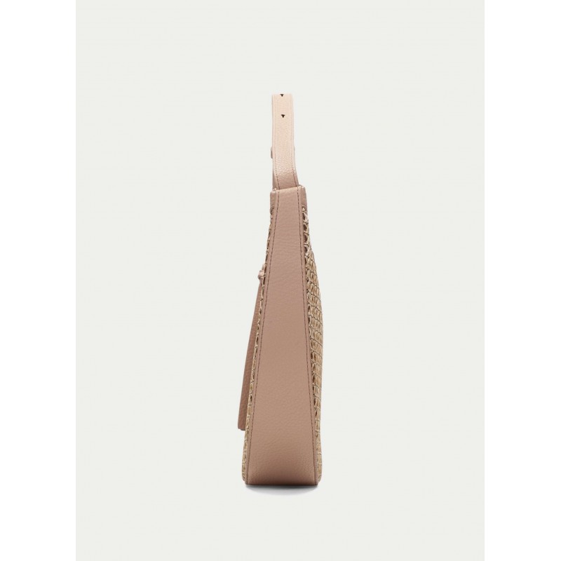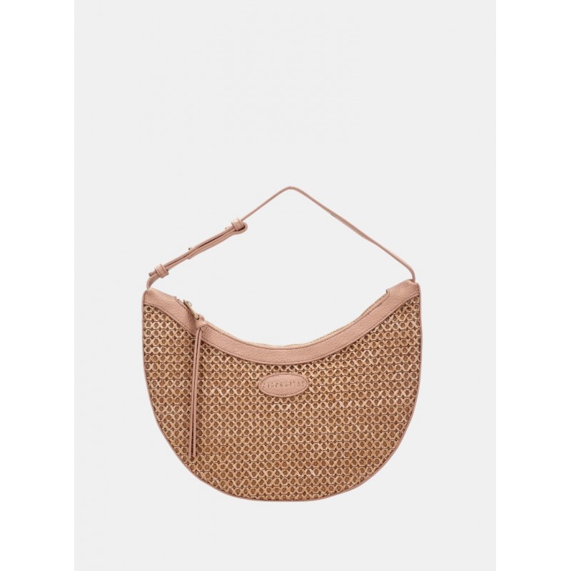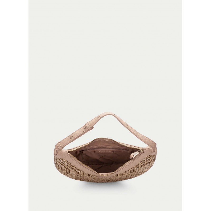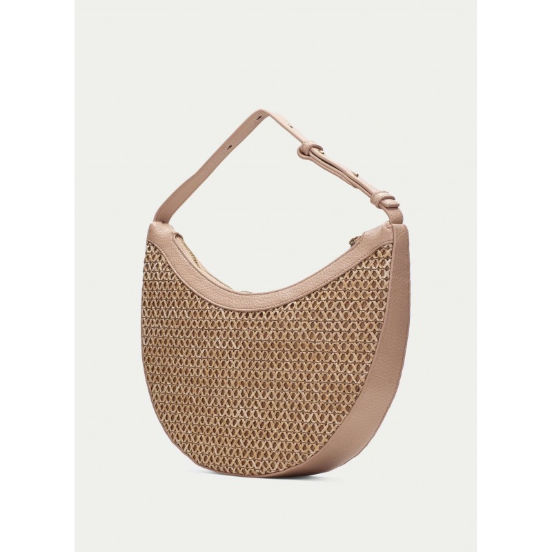 Bolso hobo para mujer de cierre principal de cremallera, confeccionado en rafia Marrakech combinado con PU, forro interior personalizado con el logo de Hispanitas y un bolsillo interior con cremallera más asa ajustable.