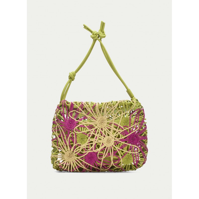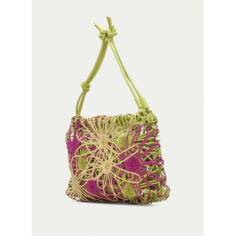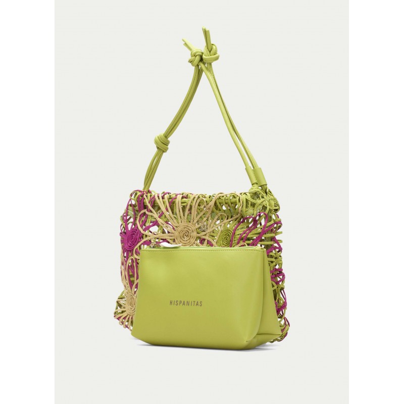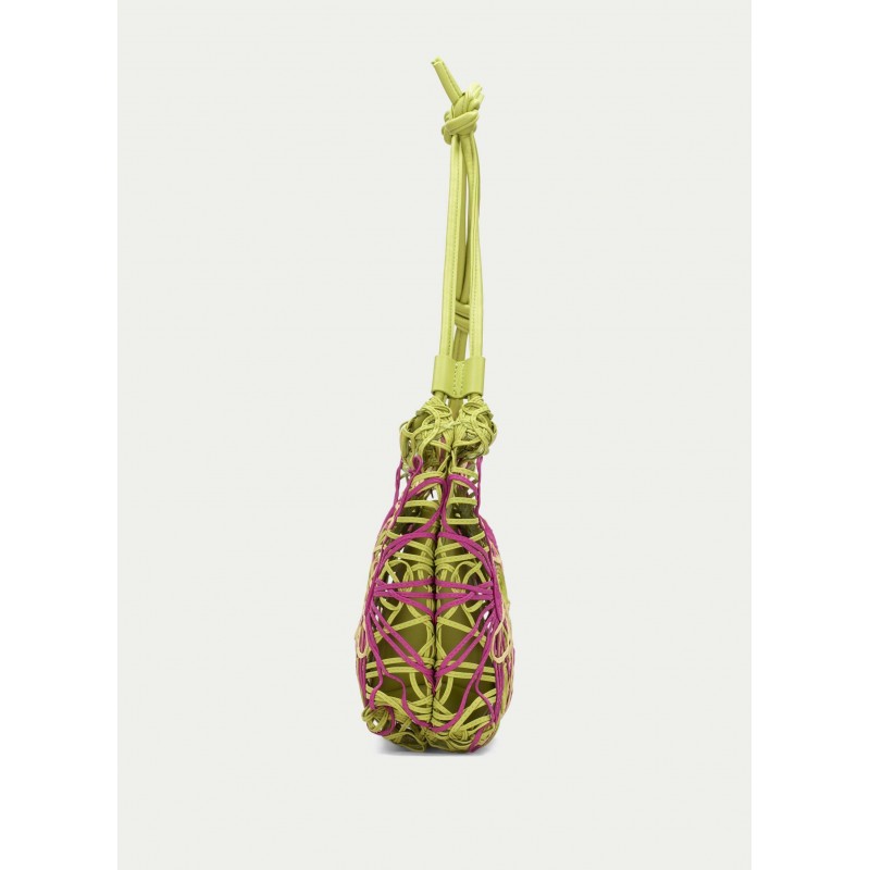 Bolso para mujer de diseño elaborado en cordela con extructura blanda y ajustable de cierre de cordón más neceser interior de cremallera y extraíble con el logo de la marca.