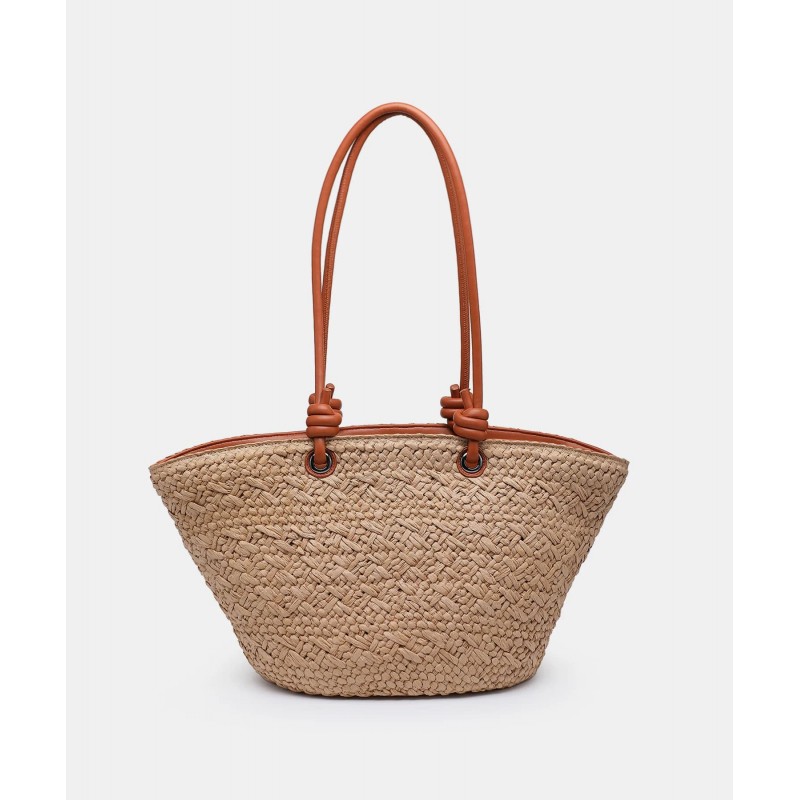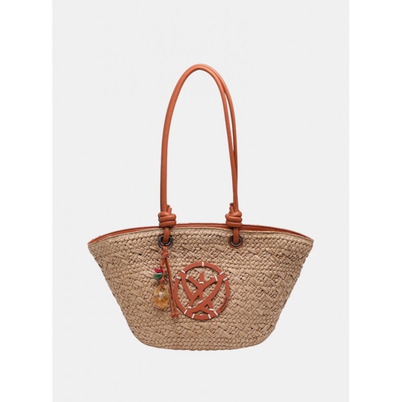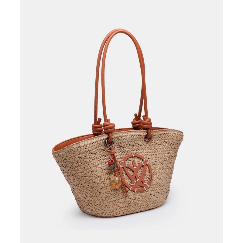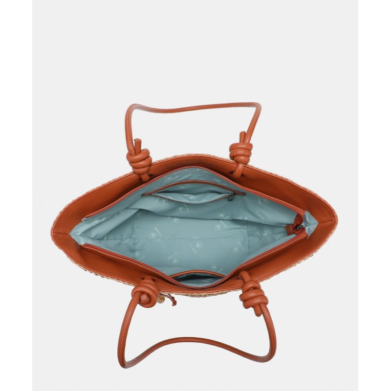 Capazo para mujer de cierre de cremallera, detalle decoratibo de la marca en la parte frontal, bolsillos onteriores y doble asas largas para llevar al hombro.