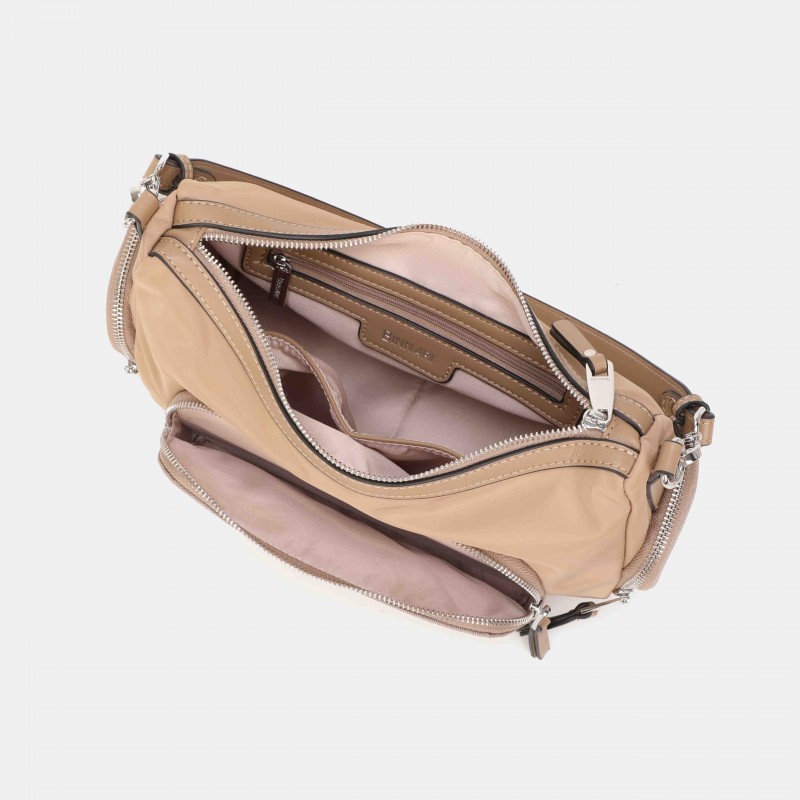 Bolso hombro Aura disponible en 4 colores. Esta confeccionado en nylon recicable y detalles en pu de alta calidad. Tiene gran capacidad de organizacion gracias a todo los bolsillos con los que cuenta.Su asa es ajustable para así poder llevarlo tambien como bandolera. Detalles metálicos de color nickel .