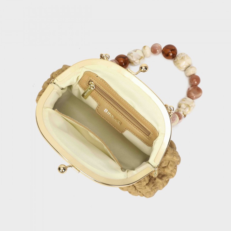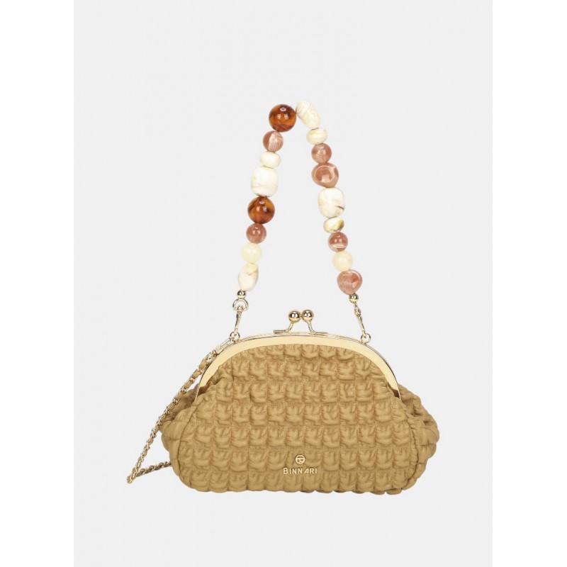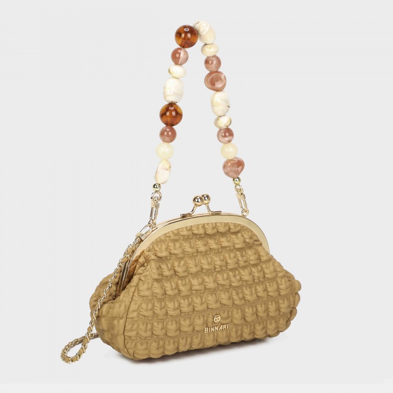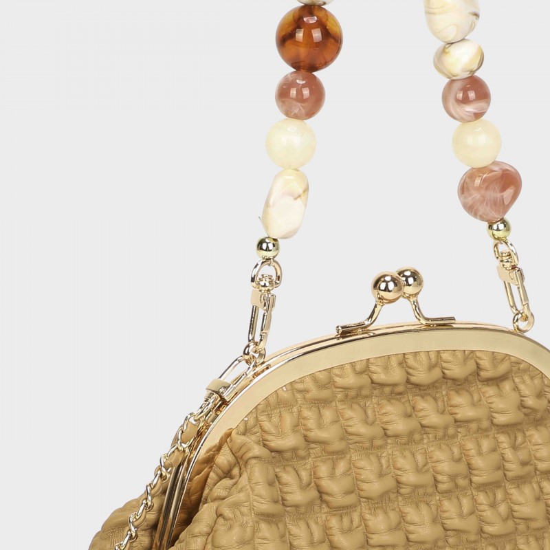 Incluye dos modelos de asas intercambiables, una asa metálica en tono dorado y otra asa corta adornada con cuentas de colores, perfecta para darle un toque mas especial. Su cierre tipo boquilla le da un aire vintage y mantienen tus pertenencias esenciales bien protegidas. Un diseño versátil, original y super estiloso.