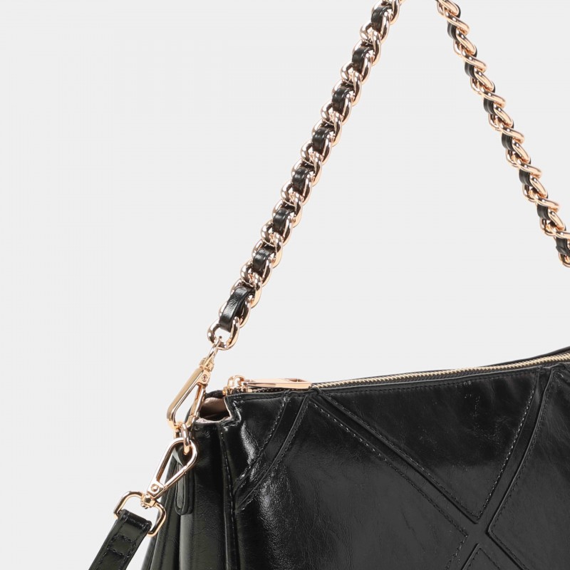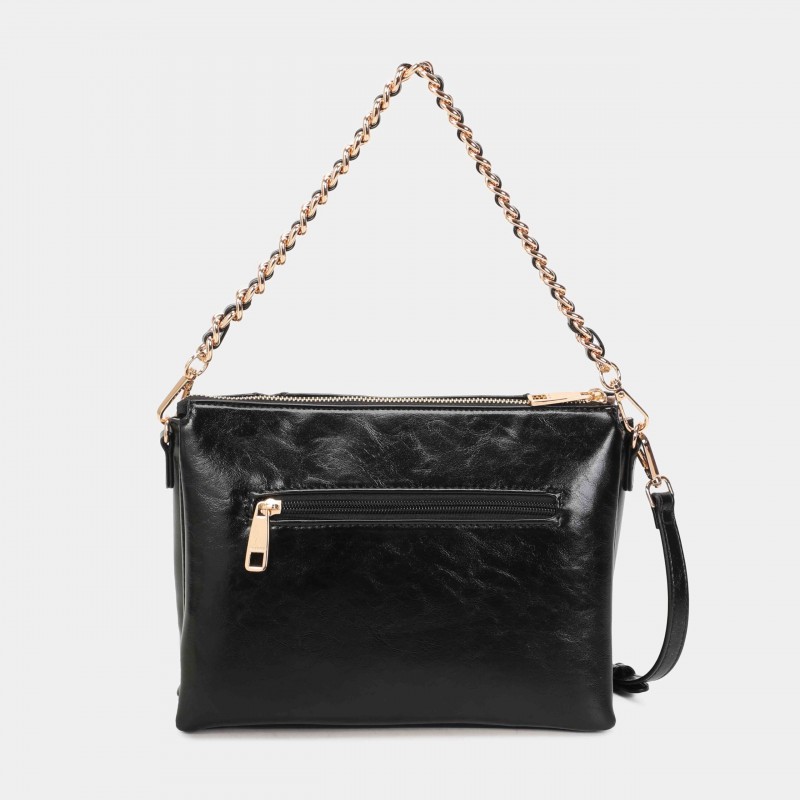 Bolso bandolera pequeña Duna disponile en color negro, hielo y make. Está confeccionada en pu de alta calidad. Tiene dos posiciones: bandolera y de hombro. Tamaño perfecto para el día a día o incluso para ocasiones más especiales.