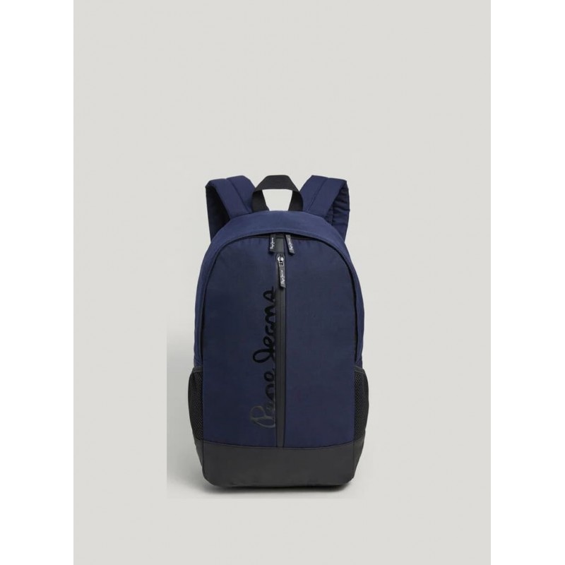 Mochila en tejido ligero y cierre central de cremallera de doble cursor. Compartimento principal con bolsillo para portátil. Bolsillos auxiliar con cremallera en frontal. Maxi logo PEPEJEANS estampado en frontal. Asas acolchadas ajustables.