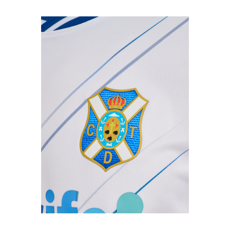 Camiseta primera equipación CD Tenerife.Insignia del club en el pecho. Estampado de cuello del centenario del estadio.