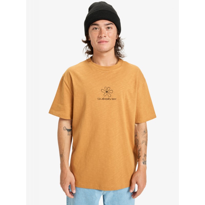 Camiseta para hombre de cuello redondo, estampado de diseño floral de la marca y manga corta.
