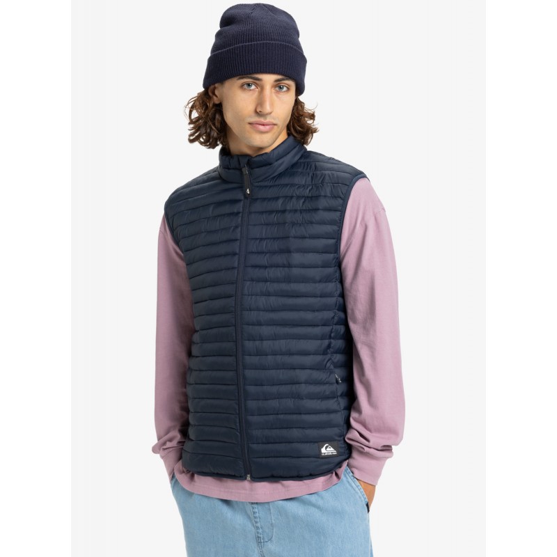 Chaleco aislante para hombre de tecnología Quiksilver DryFlight® te protege del viento y de la humedad, cierre de cremallera y dos bolsillos de cierre con cremallera.
