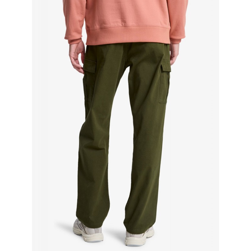 Pantalón cargo para hombre de corte recto, cintura ajustable con cordón, detalles de la marca y bajo.
