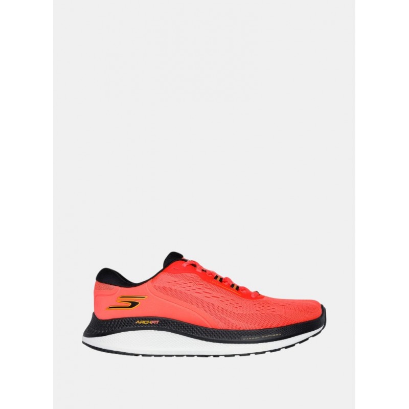 Deportivo running para hombre de cierre de cordones, detalles de la marca, parte superior de material sintético y de malla transpirable, plantilla extraíble Skechers Arch Fit con soporte en el arco plantar certificado por podólogos, placa con fibra de carbono infusionado para dar impulso a tus pasos y drop 6 mm.