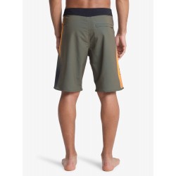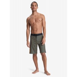 Bañador tipo bermuda para hombre elástico en 4 direcciones, duradero, cómodo y de secado rápido, cierre de cordones y cremallera más bolsillo trasero de solapa con cordón elástico para llaves en el interior del bolsillo y detalles del logo de la marca.
