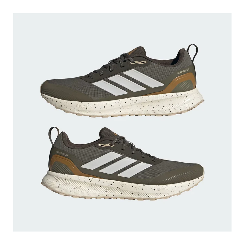 Deportivo running para hombre de cierre de cordones, detalles de la marca a contraste, diseñada para tus carreras aventureras en senderos de parques y terrenos irregulares, cuenta con un upper repelente que protege de las salpicaduras y una suela exterior Adiwear con tacos que garantiza un agarre óptimo. La amortiguación Cloudfoam te ofrece todo el soporte cómodo que esperas de un modelo Runfalcon y de 10 mm.