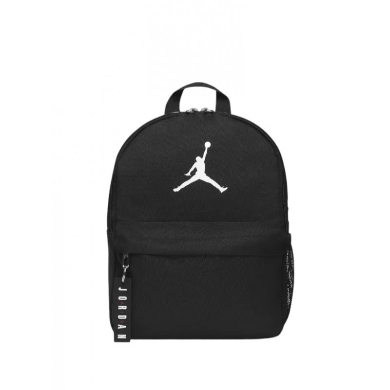 Mochila confeccionada con tejido suave y duradero.Tiene un compartimento principal con cierre de cremallera seguro y un bolsillo frontal con cremallera para acceder fácilmente a tus cosas. Tiene correas ajustables para los hombros con una trabilla para transportarla fácilmente, y está decorada con la marca Jordan.