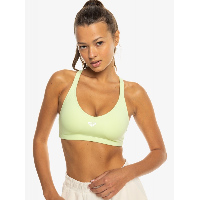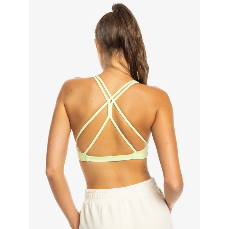 Top deportivo en tejido elástico y transpirable para mujer. Cobertura reducida.  Copas extraíbles. Tirantes finitos y cruzados en la espalda.