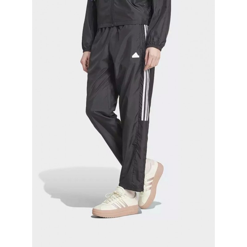 Pantalón sport para mujer de cintura elástica, detalles de la marca a contraste, bandas laterales de la marca, bolsillos con cierre de cremallera y bajo con aberturas de cremallera.