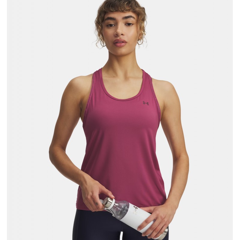 Camiseta de tirantes para mujer. Confección con material elástico en 4 direcciones que permite una mayor movilidad en cualquier dirección. Tejido increíblemente suave y transpirable. Material que capilariza el sudor y se seca rápidamente. Diseño clásico de espalda cruzada con detalles de cinta con logotipo.