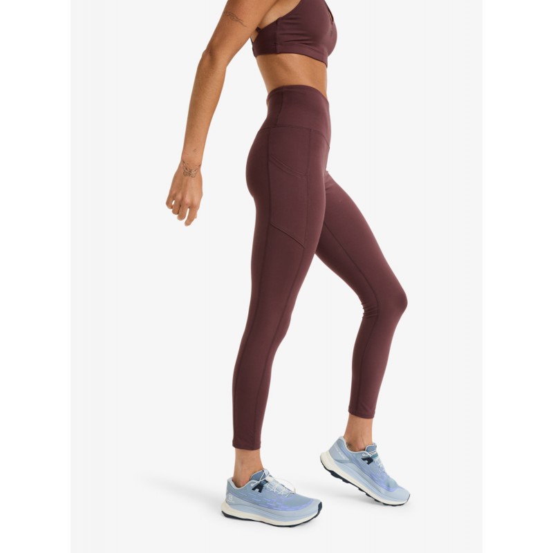 Leggings para mujer de corte ceñido, cintura alta y ancha, cintura plegada sin elástico para mayor comodidad y libertad de movimientos, bolsillos técnicos en los laterales y largo hasta el tobillo.