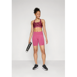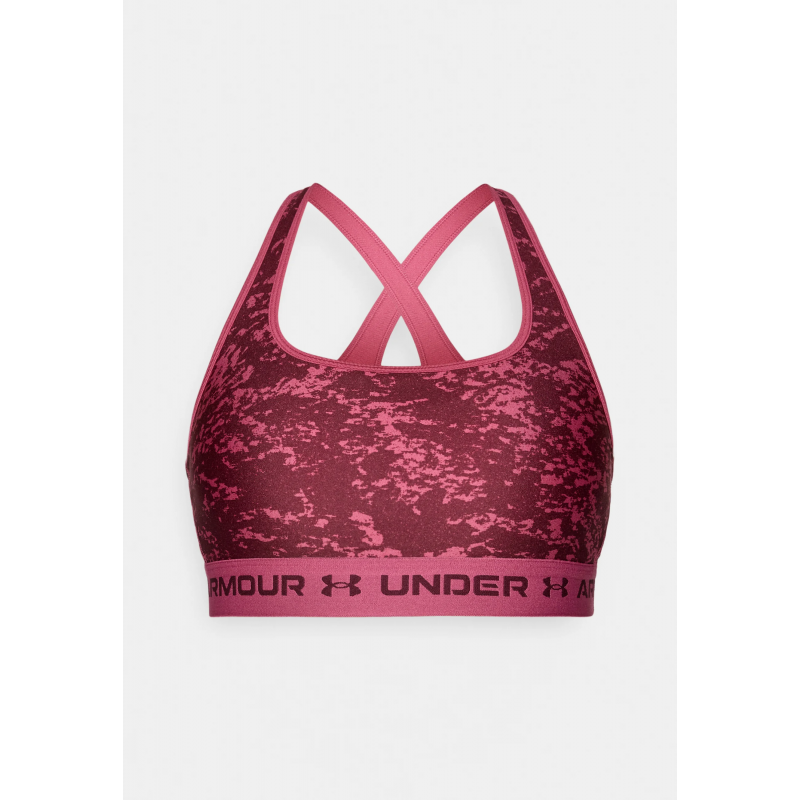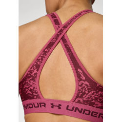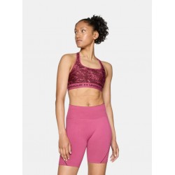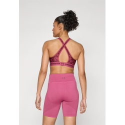 Top deportivo para mujer de sujeción en zonas estratégicas para actividades de impacto medio, copas extraíbles con marcas para distinguir en qué lado va cada una además de suaves y de secado rápido para una sujeción y protección mayores con perforaciones para una mayor transpirabilidad. Tirantes cruzados con detalle abierto actualizado para ponerlo y quitarlo con facilidad, banda elástica y muy suave y ejido HeatGear® supersuave de doble capa que ofrece una sensación excelente en contacto con la piel.
