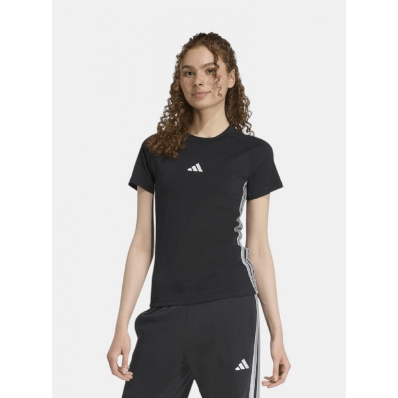 Camiseta sport para mujer. El corte ajustado resalta tu figura y el tejido 100% algodón te asegura una gran comodidad. Un logo metálico de 3 barras y detalles de 3 franjas aportan el look distintivo de adidas.