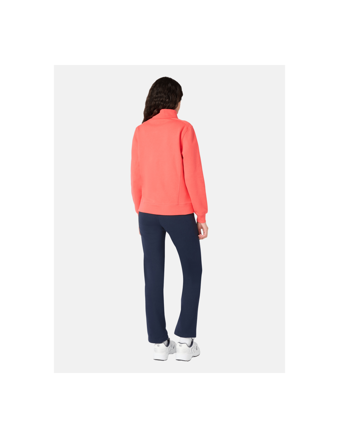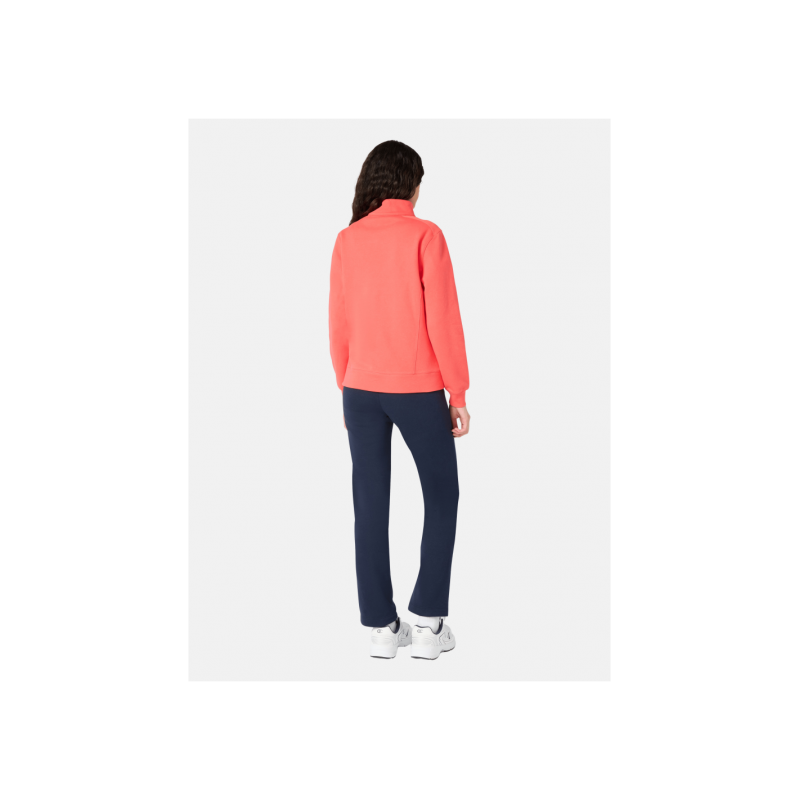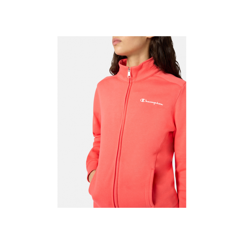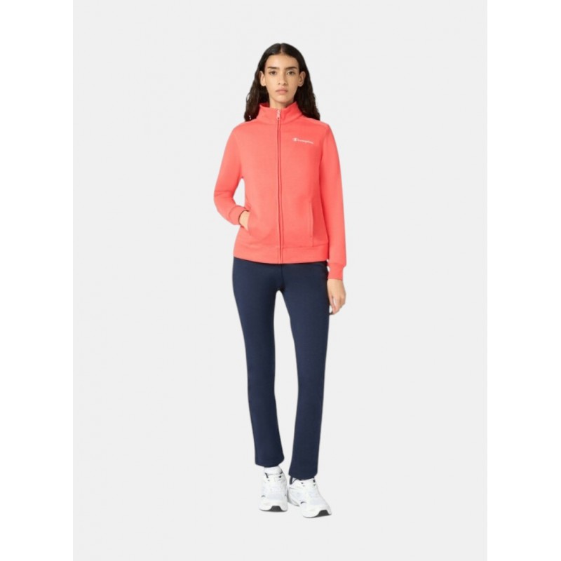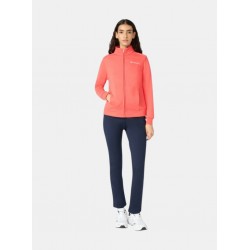 Chándal para mujer de chaqueta que incorpora una cremallera completa frontal que permite abrirla y cerrarla totalmente, cuello alto o tipo stand-up, logo en el pecho, puños y bajo elásticos más pantalón de corte estándar con una cintura elástica con cordón ajustable y bolsillos laterales.