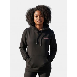 Sudadera para mujer de capucha ajustable con cordones, bolsillos delanteros con logo en la parte frontal del pecho y parte trasera.