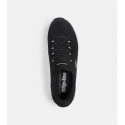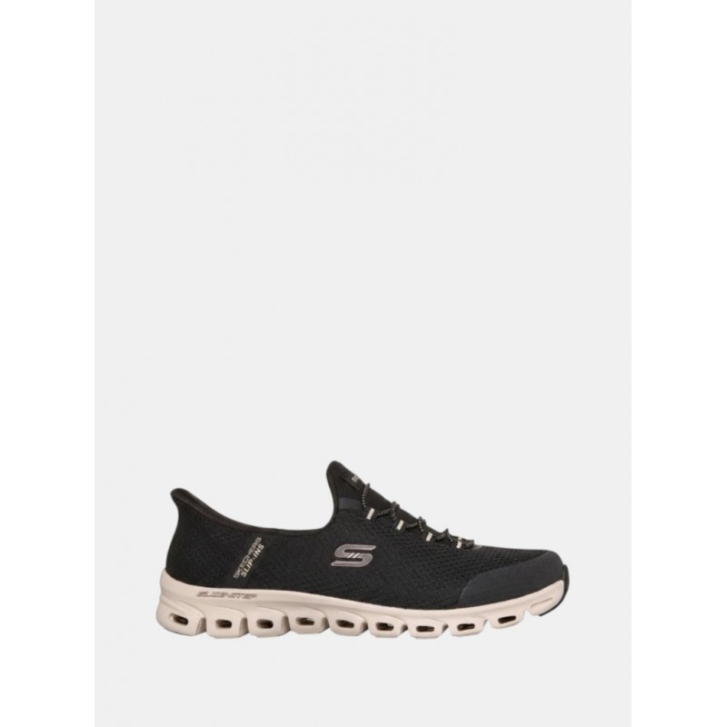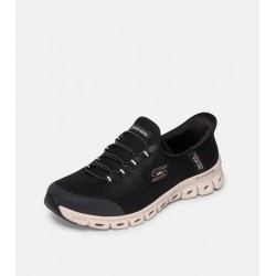 Deportivo para mujer de parte superior de malla metalizada con estampado de serpiente, cordones elásticos, una cómoda plantilla Skechers Air-Cooled Memory Foam™ y una media suela geométrica Glide-Step® con amortiguación y una altura de 2,5 cm.