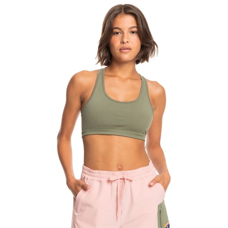 Top deportivo para mujer de corte normal, tejido interior de malla transpirable, acolchado extraíble, sujeción media y cinta elástica en la parte inferior.