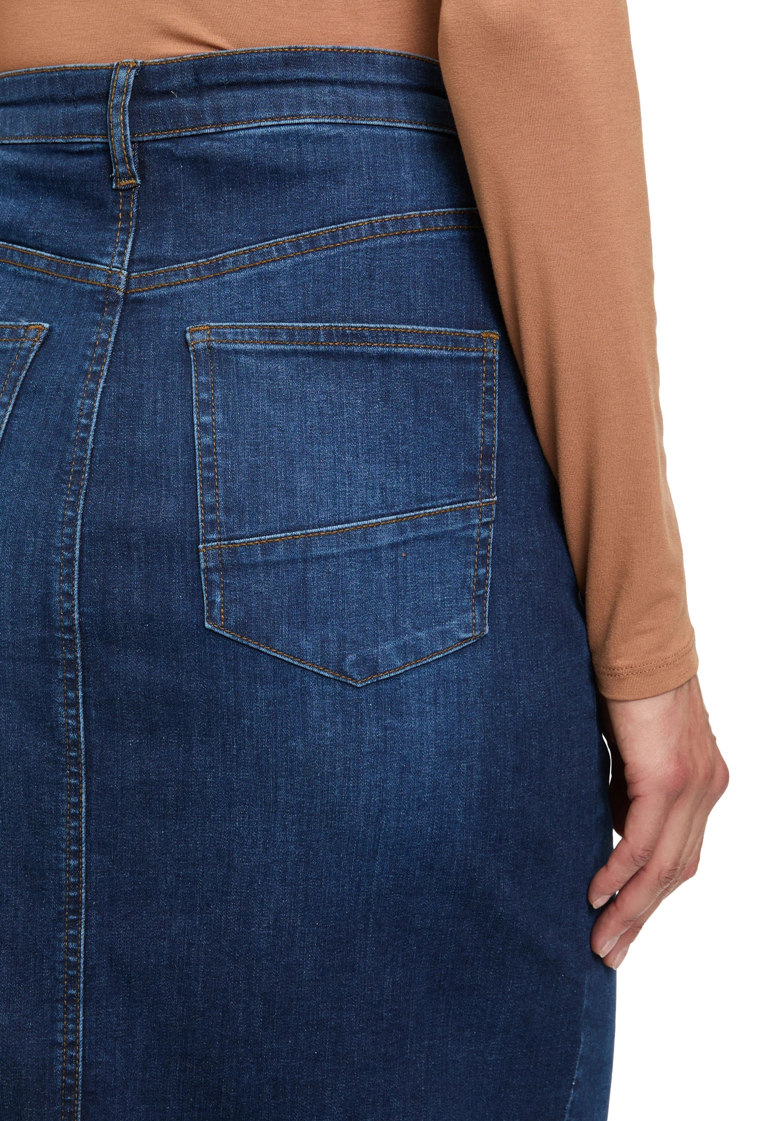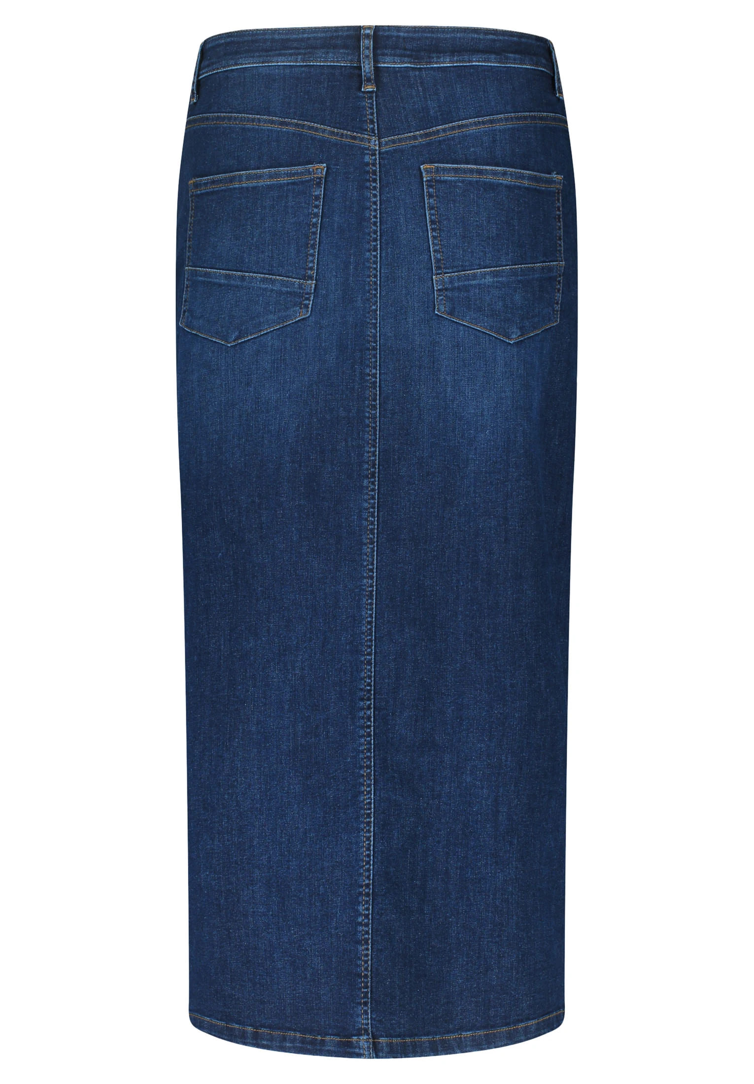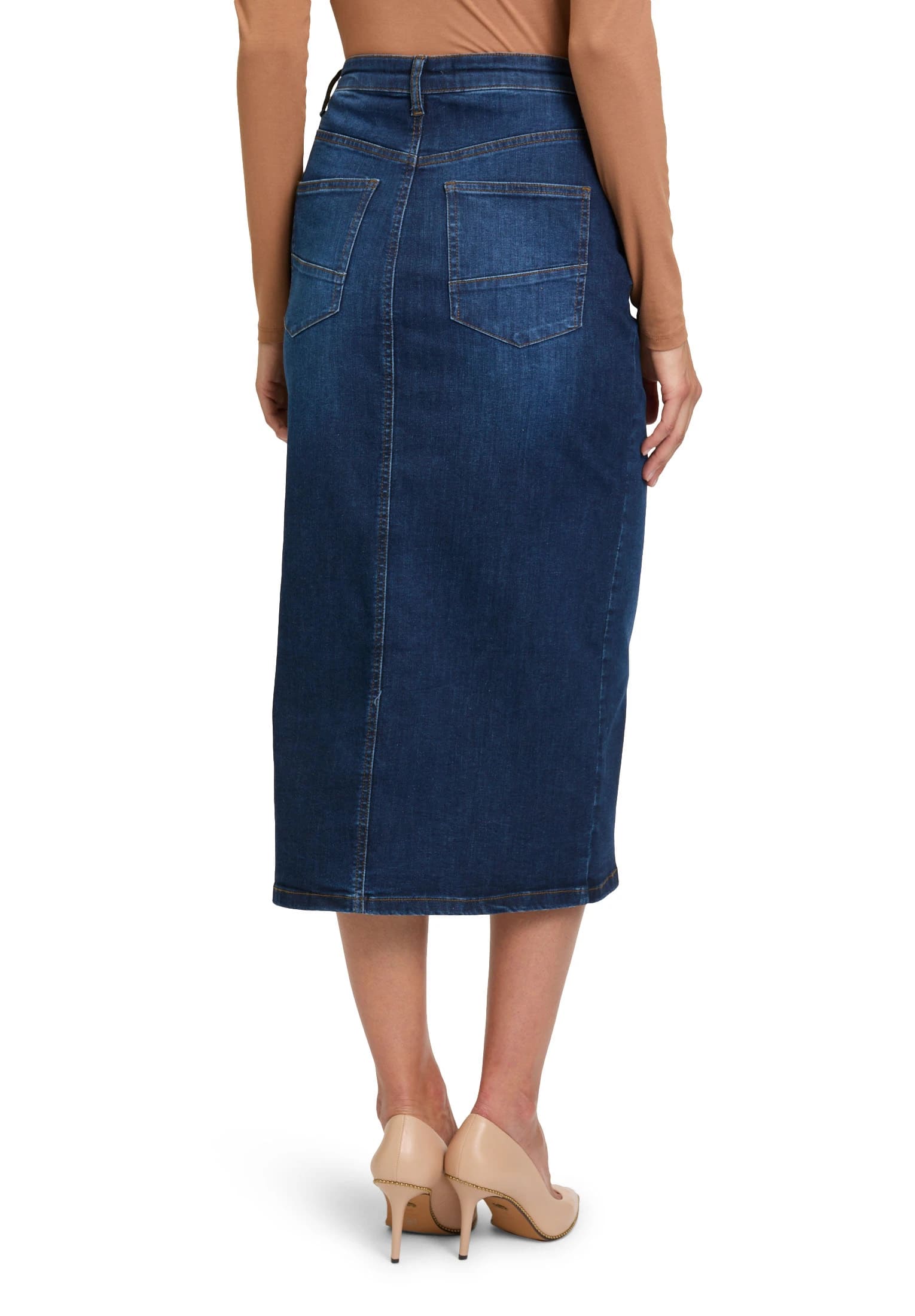 Falda midi tejana para mujer de cierre de botón y cremallera, más 5 bolsillos y abertura en la parte delantera.
