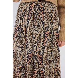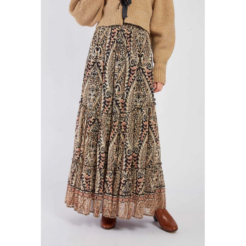 Falda larga para mujer. Corte holgado con volantes escalonados para un efecto delicado y vaporoso. Cintura elástica para un ajuste cómodo.