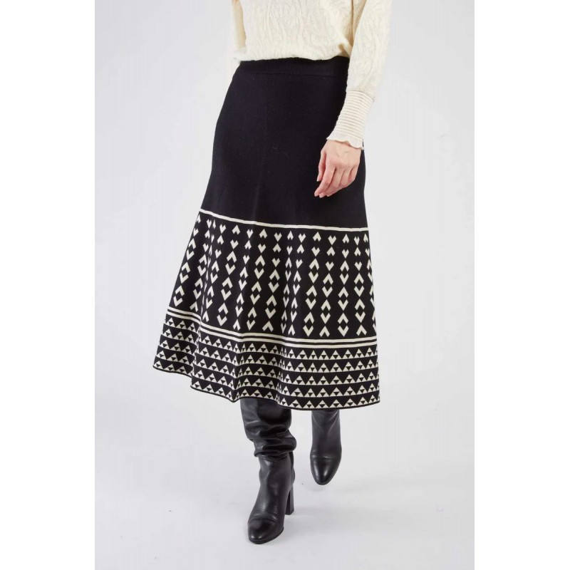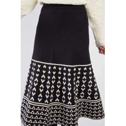 Falda midi de punto para mujer. Con un jacquard en el bajo, le da un toque gráfico y original a tu look. La cinturilla elástica ofrece una comodidad perfecta para el día a día. Su corte plisado realza la silueta con elegancia.