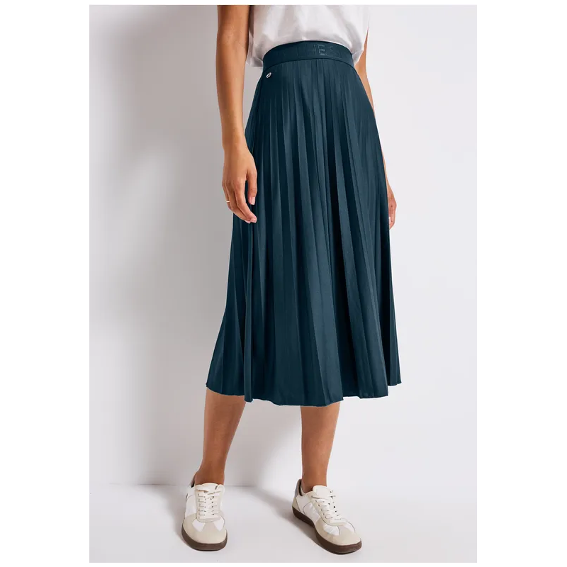 Falda midi plisada para mujer. Los pliegues estructurados se combinan con un largo midi vaporoso, perfecto para conjuntos de verano. La cinturilla elástica con el logo le da un toque deportivo y garantiza un ajuste cómodo.